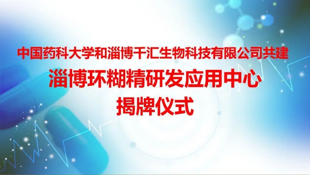 2020年11月20日,淄博千汇生物科技有限公司和中国药科大学共建“淄博环糊精研发应用中心”揭牌仪式在淄博饭店隆重举行。淄博市工信局党组副书记、副局长,市新材料新医药产业发展中心党组书记、主任王晓东出席揭牌仪式。